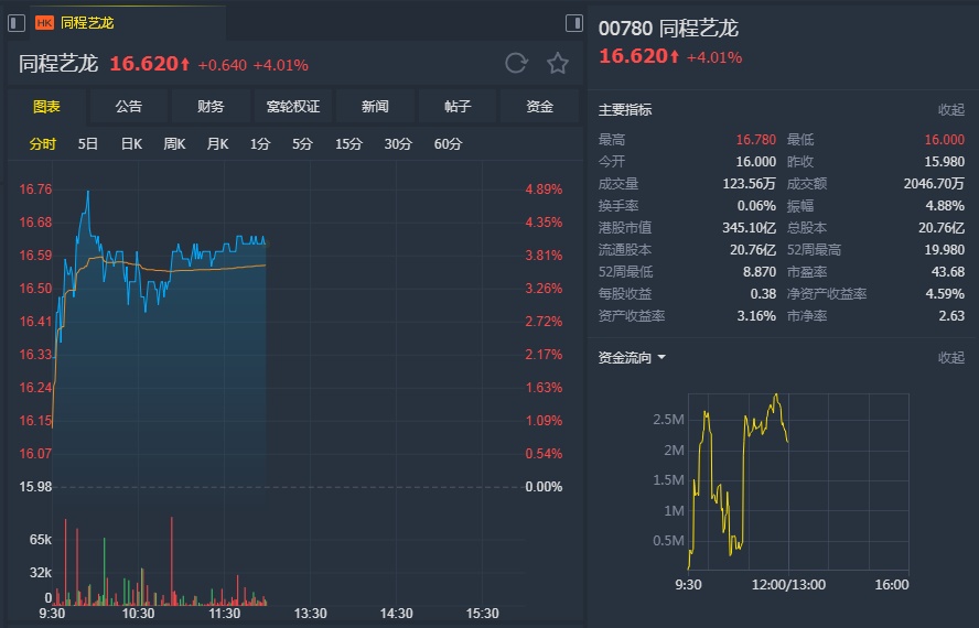 智通财经APP获悉,摩根士丹利发表报告称,预计同程艺龙(00780)2018-20年收入及净利年复合增长可分别达28%及43%,而同业携程相关增长则分别为21%及34%,主要受惠同程艺龙在三、四线城市接触面较多,予目标价20港元,评级“增持”。
