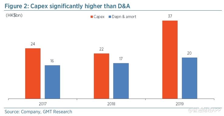 GMT Research认为,该公司受自2015年来重组的残余影响以及2018年时收购意大利电信巨头Wind Tre的相关会计调整,长和2018财年的利润被做多了132亿港元或38%。财技的使用解释了为什么营运现金流滞后于现金利润以及为何资本支出总是高于折旧及摊销。