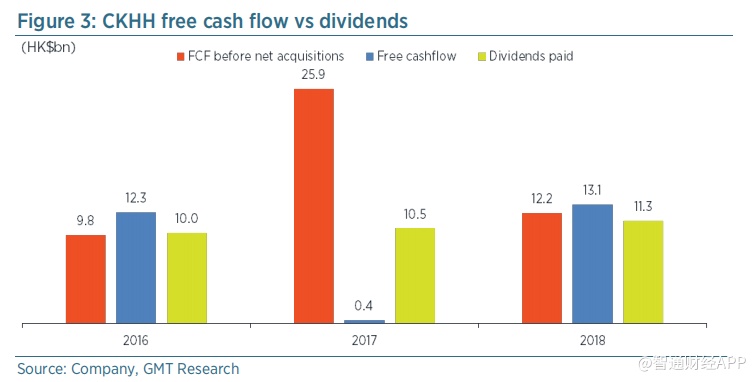 事实上,如图3所示,在过去三年中的两年里,该公司的自由现金流只够支付股息。这就解释了为什么长和一直在出售资产为收购提供资金。