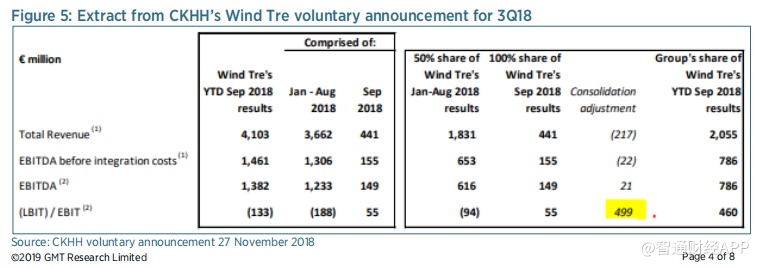 “对于本集团的合并财务报表,会计准则要求本集团在Wind Tre成为合资企业时以及在Wind Tre成为本集团子公司时,以收购日的公允价值对Wind Tre的资产和负债进行会计核算。因此,本集团已就承付款项、亏损合同和担保作出准备金,而本集团已因收购而对意大利电讯业务的资产作出较低估值。因适用的会计准则,这些准备金和较低的估值需要反映在集团的合并财务报表中。因此,当Wind Tre的业绩合并入集团的综合业绩时,意大利电信业务的息税折旧摊销前利润和息税前利润已经进行了调整。”