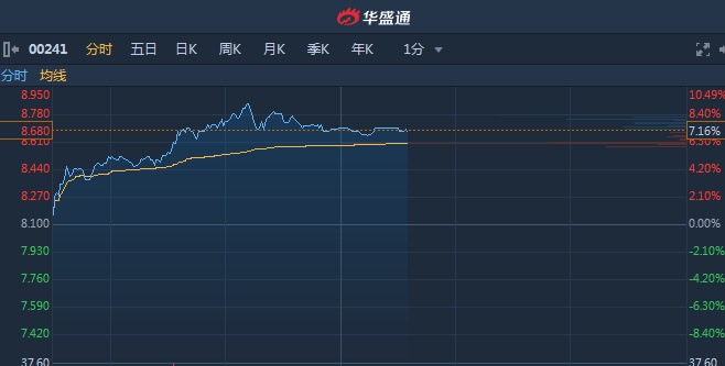 智通财经APP获悉,阿里健康(00241)获中金首予“买入”评级,目标价10.1港元。此消息刺激股价上扬,截至13时35分,涨7.16%,报价8.68港元,成交额1.065亿。