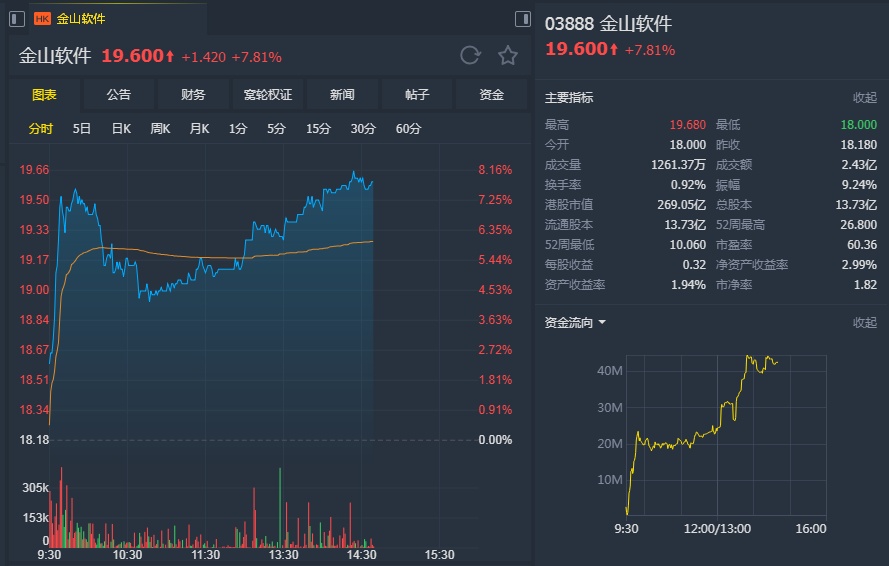 报告指出,该行对公司JX3手机板测试回应、云业务增长及成本优化工作加快、WPS业务表现稳固及将会分拆WPS上市等均持正面看法。不过,该行将公司2019及2020年经调整纯利率预测由11%及15%,降至7%及14%,主要反映猎豹移动表现较弱(部分被云业务强劲纯利抵销)。