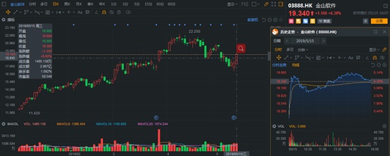 5月14日收盘后,金山软件公布2019年第一季度业绩,实现收益约17.27亿元人民币(单位下同),同比增长37%,环比下滑2%,但母公司拥有人应占亏损达到6776.4万元,相比2018年同期1.18亿元盈利而言,出现大幅盈转亏。5月15日,公司股价一开盘被直线拉涨至+7%以上,最终收涨至+6.38%。