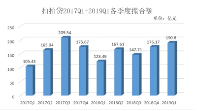 拍拍贷财报数据显示,其2019年第一季度的撮合额为190.80亿元。从其历史数据来看,撮合额峰值出现在2017年第三季度,金额为209.54亿元,此后受行业整体风险上升影响,2017年第四季度和2018年第一季度撮合额出现波动,但在平台加强风险管理之后开始回暖,自2018年第三季度起连续三个季度保持增长,2019年第一季度重回历史高位。这也再一次验证了拍拍贷作为行业头部平台具有较强的业务实力。此外,拍拍贷在2019年一季度仍然保持了健康的盈利能力,财报显示其2019年第一季度总营收达14.583亿元,净利润达7.031亿元。