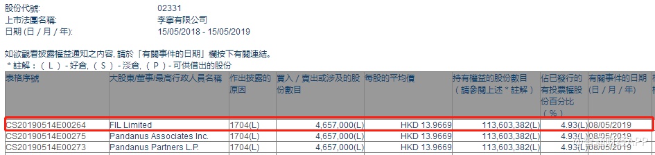 智通财经APP获悉,根据联交所资料显示,富达于5月8日减持李宁(02331)466万股,每股作价13.97港元,总值约6510.02万港元,最新持股数目约1.14亿股,最新持股比例为4.93%。