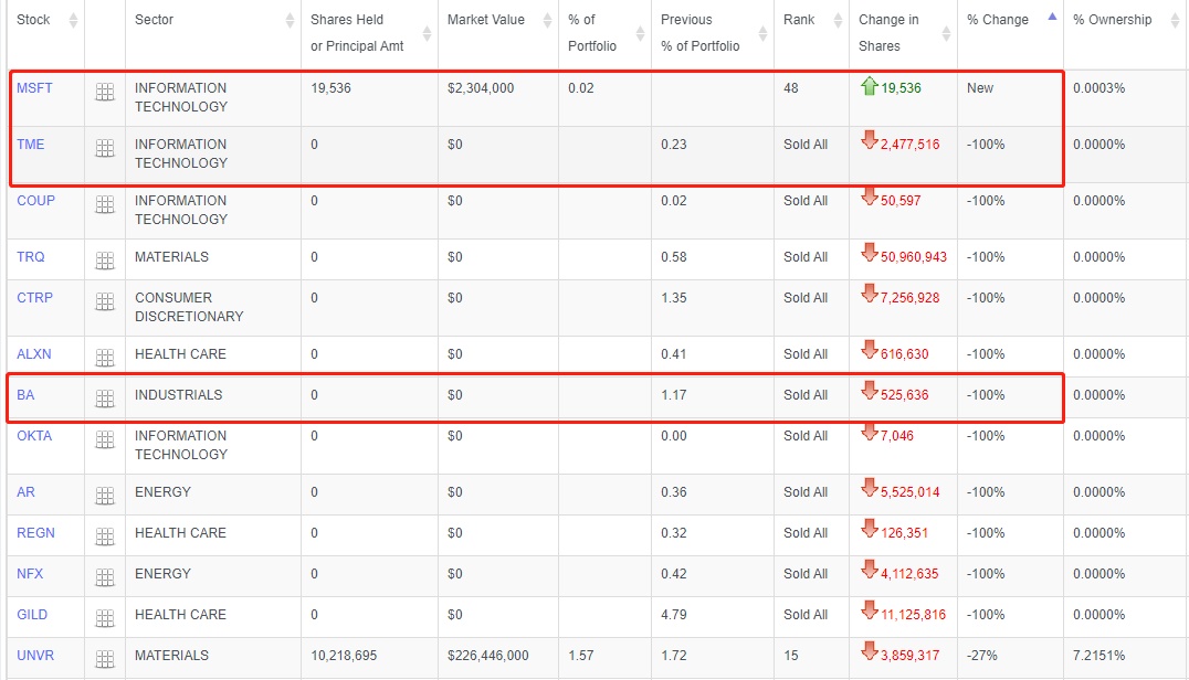 公司还对11支所持个股进行了清仓处理,其中包括携程(CTRP.US)和波音(BA.US)。