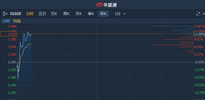 智通财经APP获悉,嘉艺控股(01025)昨日突遭洗仓闪跌近80%,今日股价现小幅反弹。截至9时55分,涨11.11%,报价1.4港元,成交额2271万。