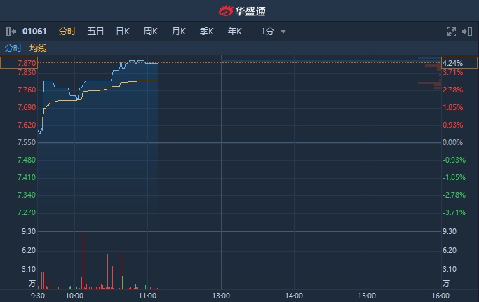 智通财经APP获悉,亿胜生物科技(01061)延续上涨态势,早盘高开高走,截至11时7分,涨4.24%,报7.87港元,成交额达387.1万港元。