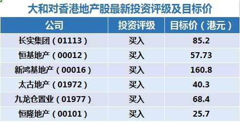 智通财经APP获悉,大和发表研究报告称,香港地产行业近日股价有所调整,但其今年首四个月表现都不错,认为香港地产市场正在成为一个更大规模的市场,因此近日股价属于自然及健康的调整,并可提供“收集”的机会。