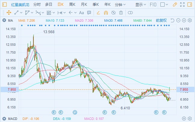 受到与阿里联姻的消息刺激,截至2019年5月16日收盘,红星美凯龙(01528)港股报7.95港元,涨10.42%,A股开盘直接封涨停板。