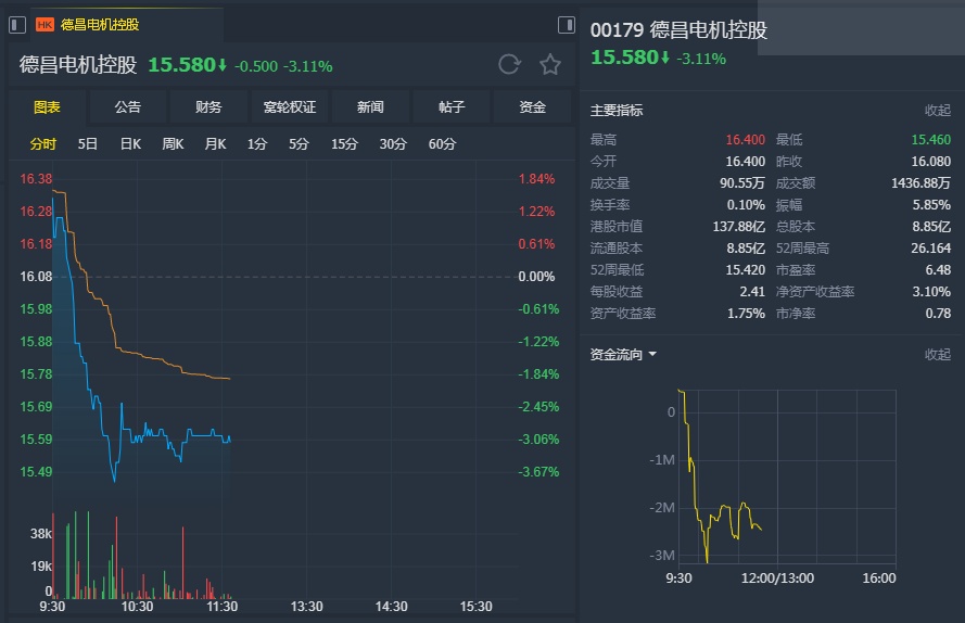 该行表示,德昌管理层将毛利率下跌1.5个百分点归因于自动生产组合的销量下跌,及下游客户寻求降价。考虑及毛利率表现逊预期,瑞信下调集团2020及2021财年的盈利预测11%至13%,股份目标价由21港元降至19.8港元,评级维持“跑赢大市”。