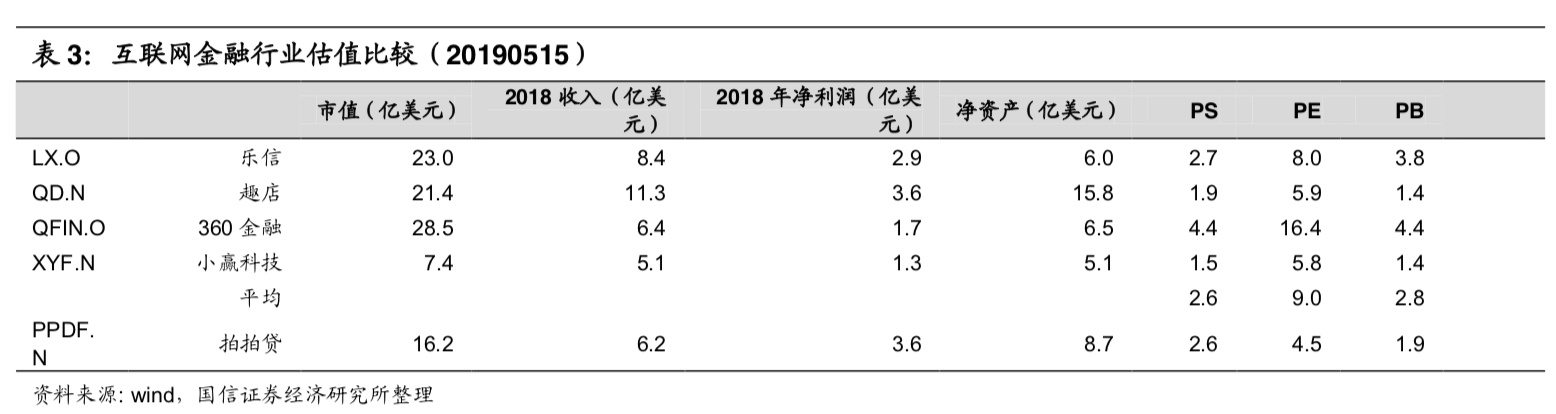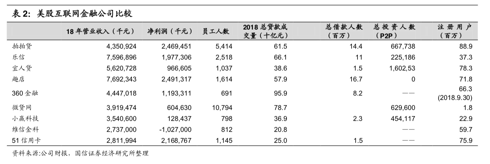 按照 2018 年全年数据排名,公司 2018 年营收 43.5 亿元,净利润收入 24.7亿元,在美股可统计的同类公司中均排名靠前。2018 年公司总贷款成交量达 到 615 亿元,注册用户数量达到 8890 万人。