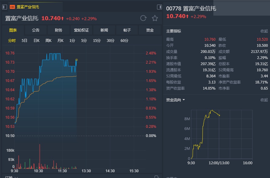 该行表示,置富零售续租水平高,在香港地产股中,其100%收入来自本地,零售收入比率占62%,能够为投资者提供相对避险,在香港信托基金中,钟情置富,股息率5厘,负债比率20.9%,美银美林评价在现时环境,不认为相对较高负债属忧虑焦点。