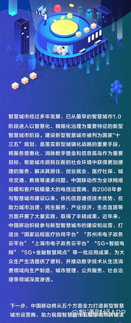 据悉,下一步,中国移动将从五个方面全力打造新型智慧城市运营商,助力我国智慧城市及智慧城市群建设。