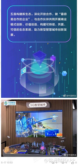 智通财经APP获悉,5月17日是世界电信和信息社会日,中国移动(00941)官方微博发布5.17宣言,提出将顺应我国新型城镇化发展需要,发挥公司“5G+”等方面优势,全力打造新型智慧城市运营商。