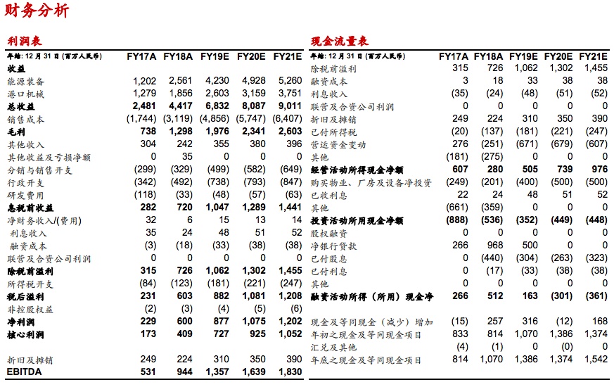 订单强劲。年初至今,三一国际获得 26 台电自动化场桥订单,金额为人民 币 3.84 亿元(均价:1,480 万元/台),而 2018 年全年的订单则为 17 辆。 据我们了解客户为招商局港口(00144),该公司目前正对其轮胎 式场桥进行升级以降低人工成本。三一国际认为,新产品有助客户显著提高 集装箱搬运效率。26 台自动化场桥将于 2019 和 2020 年初交付。公司有信 心今年取得更多订单。