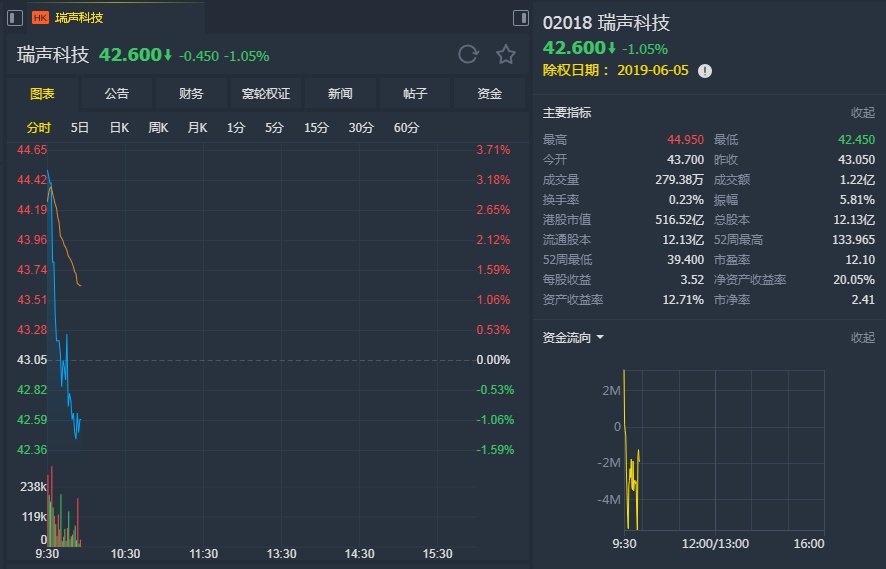 智通财经APP获悉,交银国际上调瑞声科技(02018)目标价,由35港元升至45港元,等同2019-2020年平均市盈率14倍,评级由“沽出”上调至“中性”。