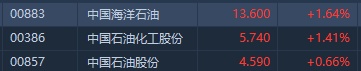 智通财经APP获悉,“三桶油”早盘悉数上扬,截至发稿,中海油(00883)涨1.64%,中石化(00386)涨1.41%,中石油(00857)涨0.66%。