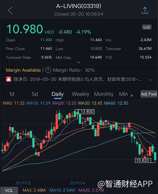 截至今日收盘,雅生活服务(03319)跌4.19%,报10.98港元。