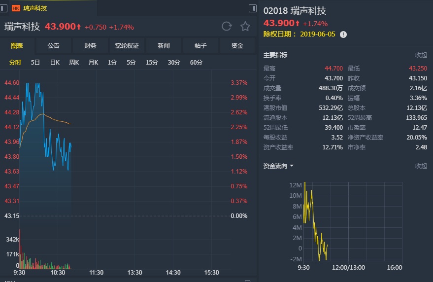 高盛称,瑞声科技首季度毛利率及经营开支比率均不及高盛预期,但目前公司股价达到高盛目标价,现高盛对瑞声拓展安卓智能手机及手机镜头的发展应乐观。