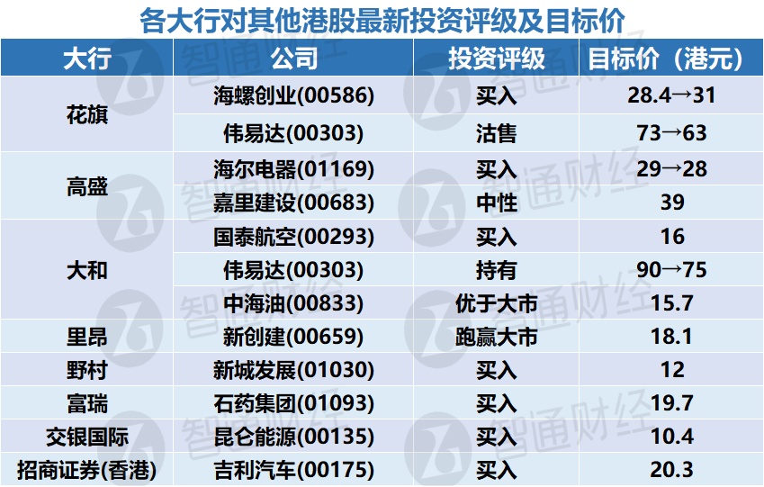 一、各大行对瑞声科技(02018)最新投资评级及目标价:二、各大行对中国铁塔(00788)最新投资评级及目标价:三、各大行对小米(01810)最新投资评级及目标价:四、各大行对其他港股最新投资评级及目标价: