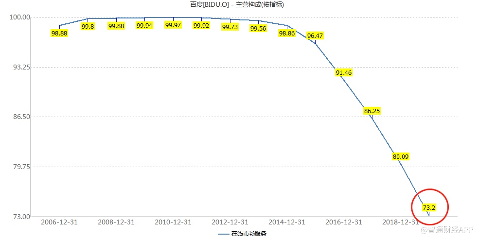 很明显,从市值看,百度已跌出“BAT”的巨头行列,其与阿里(BABA.US)、腾讯(00700)的市值差距已拉大至10倍。以百度当下的现状,“BMJ”的排序或许更为合适。