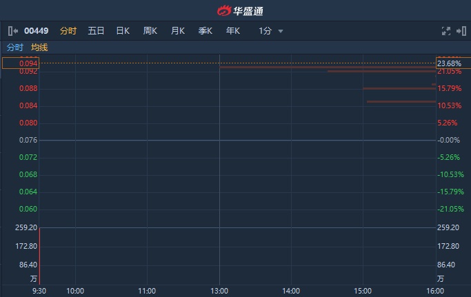 智通财经APP获悉,志高控股(00449)早盘大幅高开,截至9时20分,涨23.68%,报0.094港元,成交额达24.36万港元。
