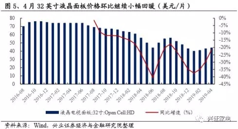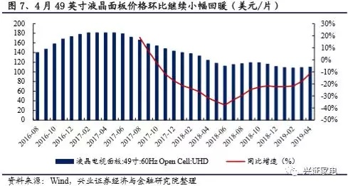 年初至今面板价格小幅回升,后续上涨动力有限。根据IHS数据,4月32英寸、43英寸、49英寸和55英寸电视面板价格分别为44美元/片、85美元/片、110美元/片和140美元/片。受益生产成本支撑、三星计划减产和厂商超量备货等因素影响,年初至今面板供求情况改善,价格逐步止跌回暖,4月价格环比延续3月小幅回升态势。不过,受市场需求低迷、三星减产计划或将延后、以及电视厂商面板库存位于高位等因素影响,面板价格后续上涨动力有限。