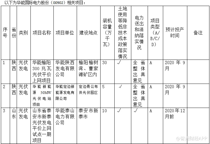 以下摘自附件2《2019年第一批拟建平价上网项目信息表》中相关港股上市公司: