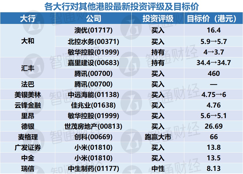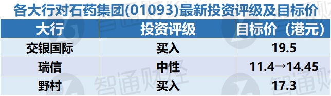 一、各大行对石药集团(01093)最新投资评级及目标价: