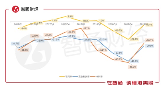 但环比来看,改善不是一星半点。智通财经APP了解到,虽然爱奇艺2019年一季度营收环比微减0.5%,但72.8亿元营业成本环比减少14.6%,因此毛利率自2018年三季度降至-10.7%,四季度进一步降至-21.3%后,2019年一季度的-4.1%毛利率已是明显好转。使得爱奇艺第一季度净亏损为18.1亿元净亏损,较上一季度34.8亿元亏损已有大幅缩窄。