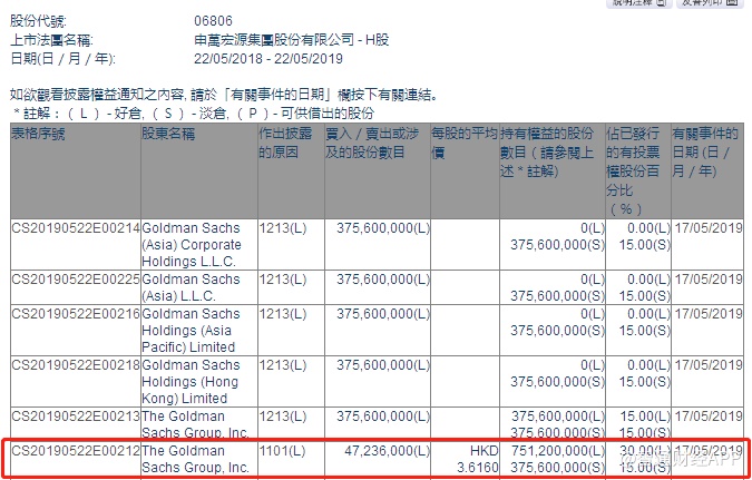 智通财经APP获悉,根据联交所资料显示,高盛于5月17日增持申万宏源(06806)4723万股,每股作价约3.6港元,总值约1.7亿港元,最新持股数目约7.51亿股,最新持股比例为30%。