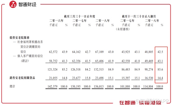 值得一提的是,嘉涛的用户分为两大类,包括社会福利署及个人客户,社会福利署会向嘉涛购买改善过的宿位。从收入占比来看,提供安老院服务占据收入大部分,在85%左右,其中社会福利署和个人客户各占安老院服务的一半,2018年度来自社会福利署的收入占到总收入的43%。