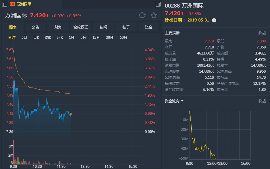 智通财经APP获悉,瑞银发表研究报告称,目前万洲(00288)的股价相于其EV/EBITDA的7.6倍,看好其表现,主因美国市场复苏可带动利润增长、中美业务协同效应有助公司在中国猪价上升周期时获利,但需留意中国猪价升幅较预期低和包装肉的盈利或低于预期,重申公司“买入”评级,目标价10.11港元。