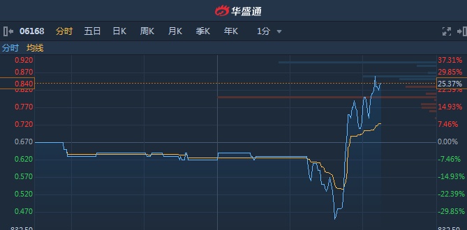 智通财经APP获悉,中国优通(06168)午后股价反涨,振幅达67%。截至15时14分,涨25.37%,报价0.84港元,成交额2820万。值得注意的是,该股盘中低见0.45港元,创历史新低。
