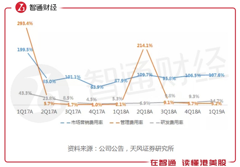 市场营销费用率是该公司的核心费用率,2019年Q1为107.6%,和2018年Q4基本一致,对于该项费用问题,该公司曾在业绩电话会上谈到,目前公司销售和营销支出主要投资于创建品牌认知度和用户参与度上,其实就是巩固用户的品牌意识和提高用户粘性。