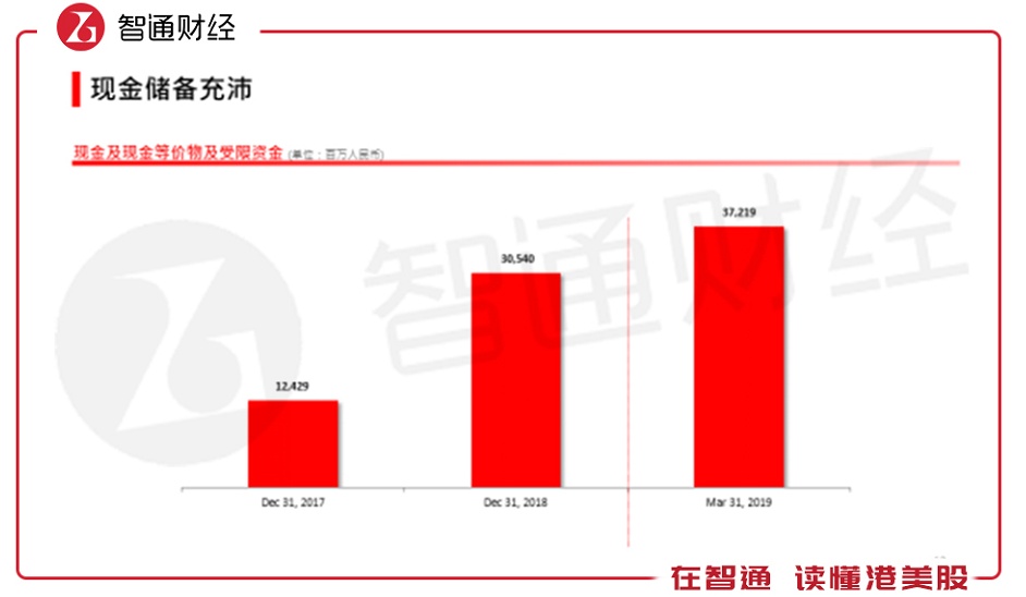 此外,拼多多拥有足够的扩张资金,2019年Q1,该公司持有的现金及现金等价物及受限资金为372亿元,其中持有现金和现金等价物225亿元,较2018年12月份增加83.4亿元。债务的干净以及现金流的充沛,为该公司加快扩张速度带来更多的机会。