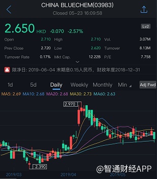 截至今日收盘,中海石油化学(03983)跌2.57%,报2.65港元。