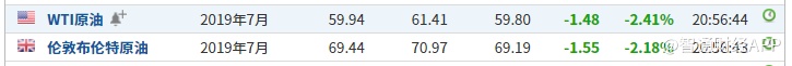 原油价格大跌,WTI原油、布伦特原油均跌超2%。