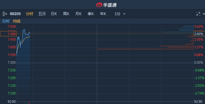 智通财经APP获悉,万洲国际(00288)获瑞银重申“买入”评级,目标价10.11港元,截至9时54分,涨2.6%,报价7.49港元,成交额6779万。