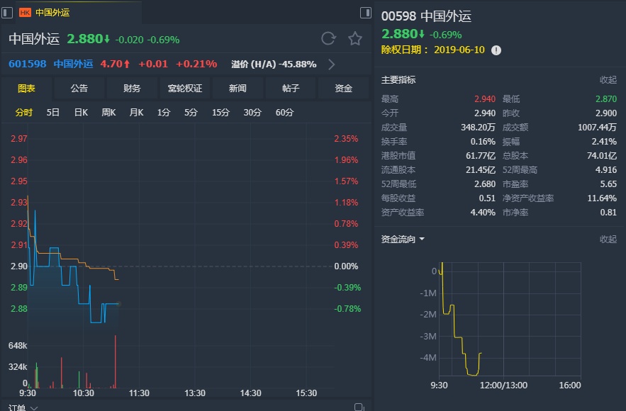 智通财经APP获悉,大摩发表研究报告称,由于中国外运(00598)2018年经常性溢利下跌10%,核心盈利改善可见度减少,故将其2019年及2020年盈利预测削减23至24%,至25.18亿元人民币及27.94亿元人民币,将评级由“增持”下调至“与大市同步”,目标价由4.95港元降至3港元。