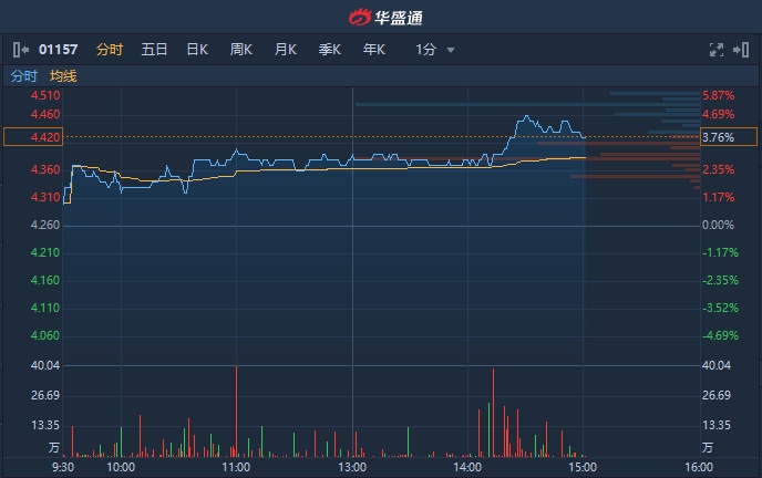 智通财经APP获悉,中联重科(01157)今日高开高走,站上五日线,截至15时整,涨3.76%,报4.42港元,成交额达2857万港元。