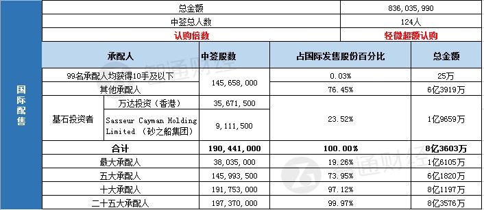 其中,公开配售申购人数3846,一手中签率100%,超购倍数约0.48倍。