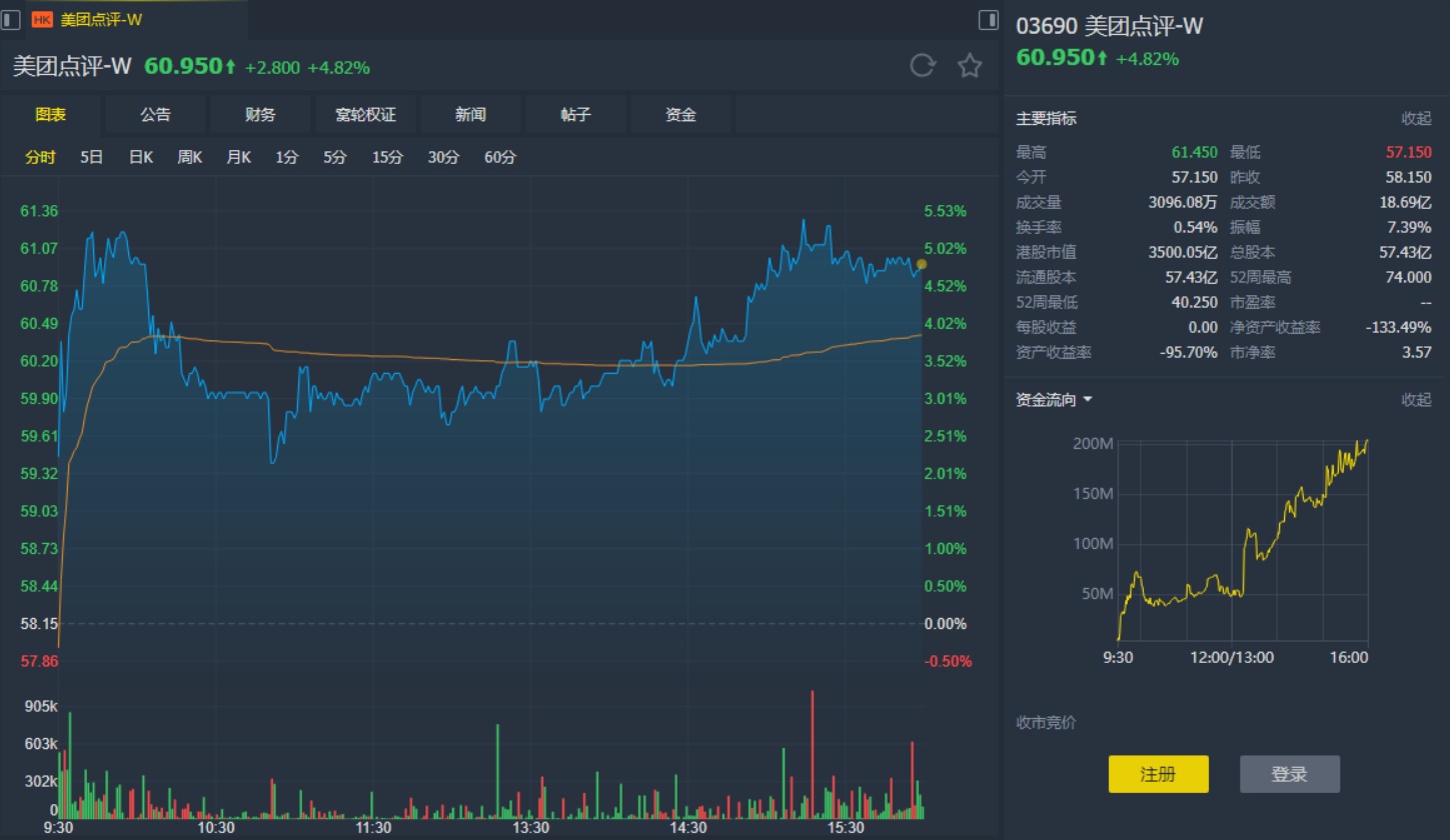 该行表示,美团在食品配送、店内和旅游等业务有所改善。经营开支比率由去年第一季及第四季的43%及44%,下跌至今年首季的36%。在保持以交易额计的市场占有率约60%的同时,预期继续聚焦在市场推广效益及经营杠杆。