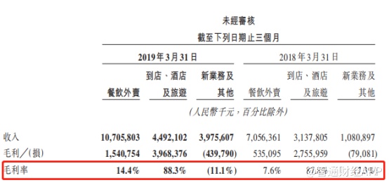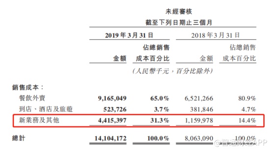 财报显示,美团新业务及其他分部的收入约40亿元,同比增长267.8%;交易金额约164亿元,同比增长22.4%。同时,该业务总亏损呈现环比缩窄,截至2019年3月31日底,毛利率为负11.1%,环比改善12.2个百分点。