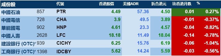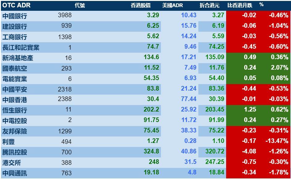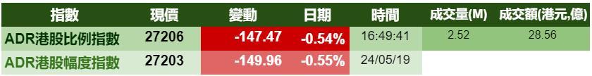 智通财经APP获悉,港股ADR指数跟随其走势继续走软,按比例计算,收报27206点,跌147.47点。大型蓝筹个别发展,汇丰控股收报65.93元,较港收市升0.53元;腾讯控股收报320.72元,较港收市跌4.08元。