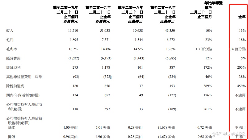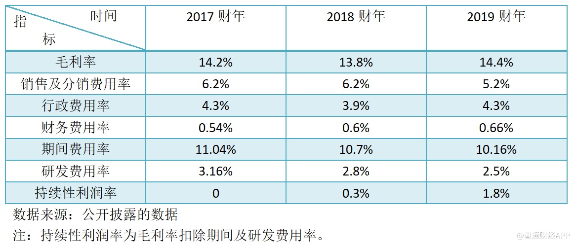2019财年,该公司实现股东净利润5.97亿美元,而去年则是亏损1.89亿美元,从单个报表净利润上看,很难看出该公司业务盈利水平,因此智通财经APP将该公司近三年的各项盈利及费用指标制成表格。