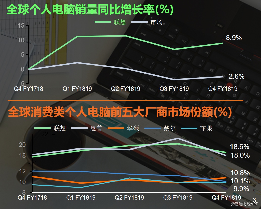 2019财年可以说是联想具有历史性的一年,首先是业绩上重回双位数增长水平,其次在具体业务上,也实现了历史性的突破。