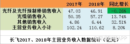 其次,长飞年报的出炉表明部分产品市场需求的低迷。2018年时,长飞的主营业务收入为110.62亿元,同比增长8.2%,稍高于市场预期。但高增长是由光缆销售以及其他销售所带动,增速分别为13.74%、32.51%。而收入占比更大的光纤及光纤预制棒销售收入则同比下滑0.26%,不及市场预期。
