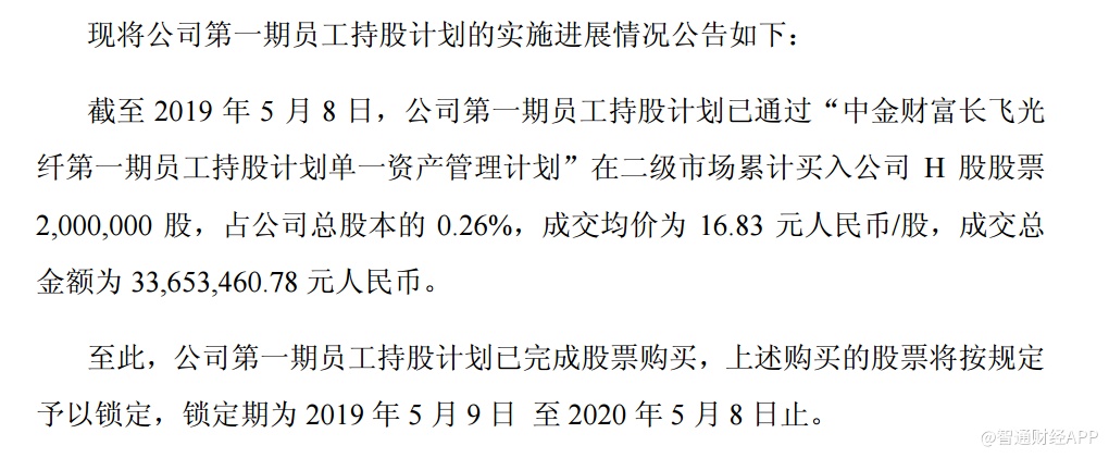 而该价位已低于员工持股成本。据智通财经APP了解,长飞的第一期员工持股计划于2019年5月8日完成,买入H股股票200万股,成交均价为16.83元人民币每股,总成交金额约3365.35万元人民币。